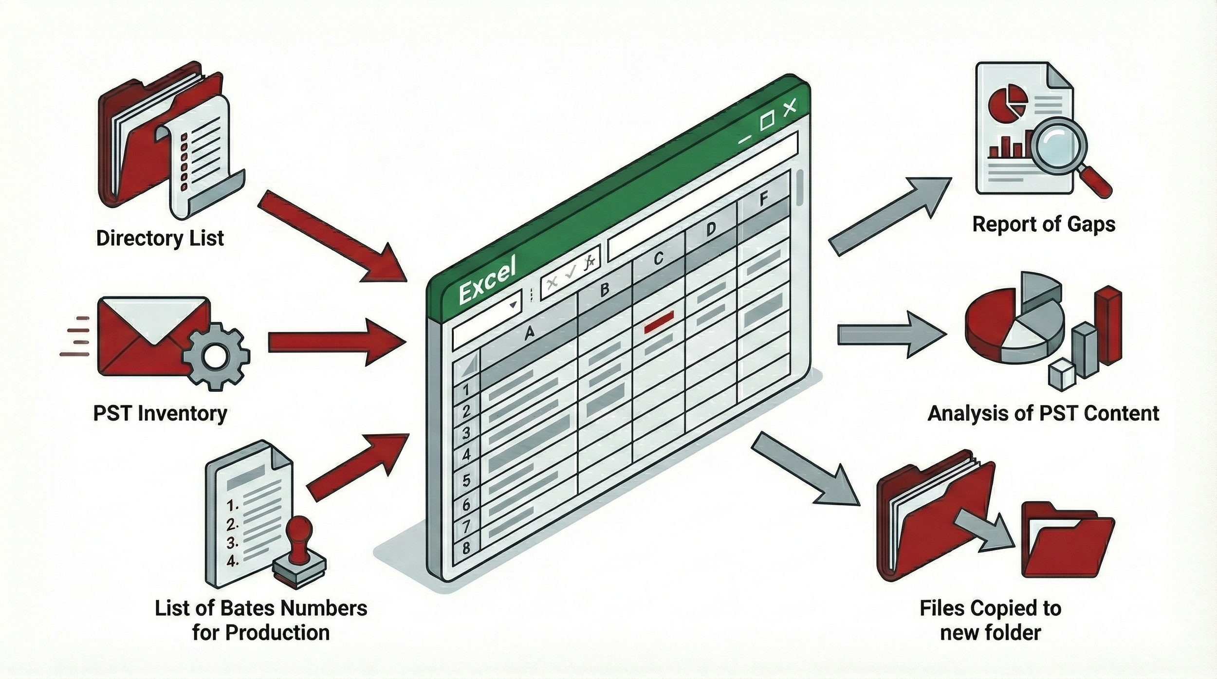 EDD Toolbar is an Excel plug-in that helps you work with directory lists, bates numbers, PST containers and ZIP files right within Excel. Running gap checks, checking for missing files in your load files and exporting from Excel directly in Concordance delimited DAT file has never been easier.